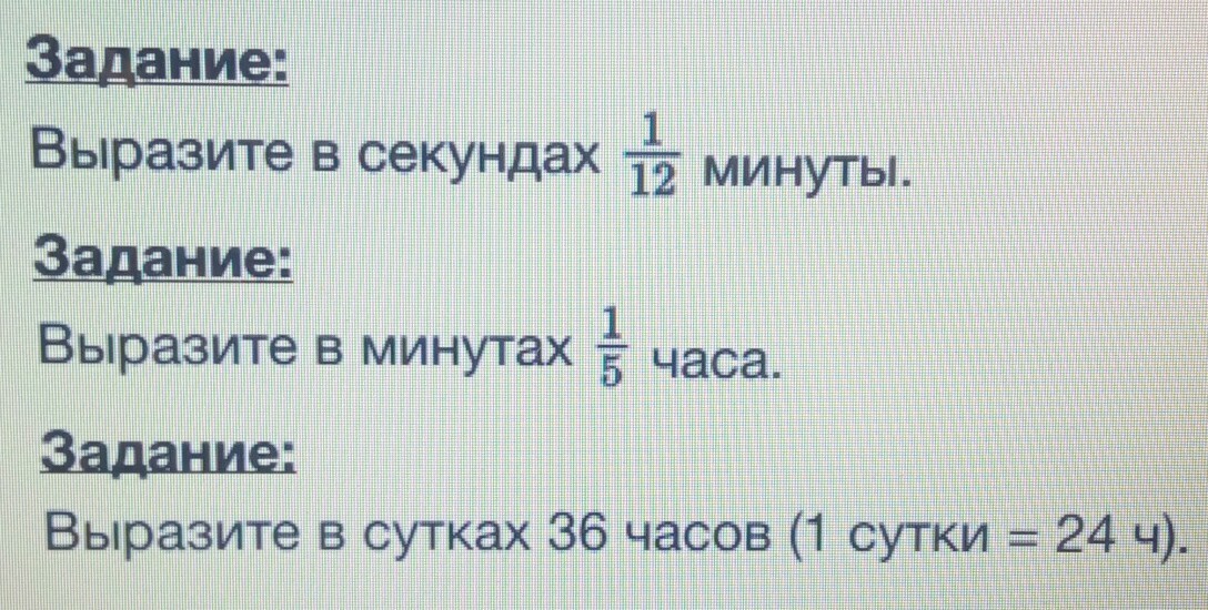 1)60 *1/12=5(сек) 2) 60* 1/5=12 (мин) 3)36 :24=1,5 суток