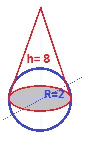 Объемы равны - находим высоту конуса - h.