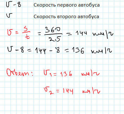 Одновременно из двух городов,расстояние между которыми равно 360 км,навстречу друг другу выехали два микроавтобуса и встретились через 2,5 ч. Найдите скорость каждого микроавтобуса,если скорость первого на 8 кмч меньше,чем скорость второго.