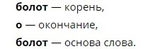 Чтобы указать состав слов нужно выделить окончание, приставку, суффикс, корень и основу. В вашем случае болото.