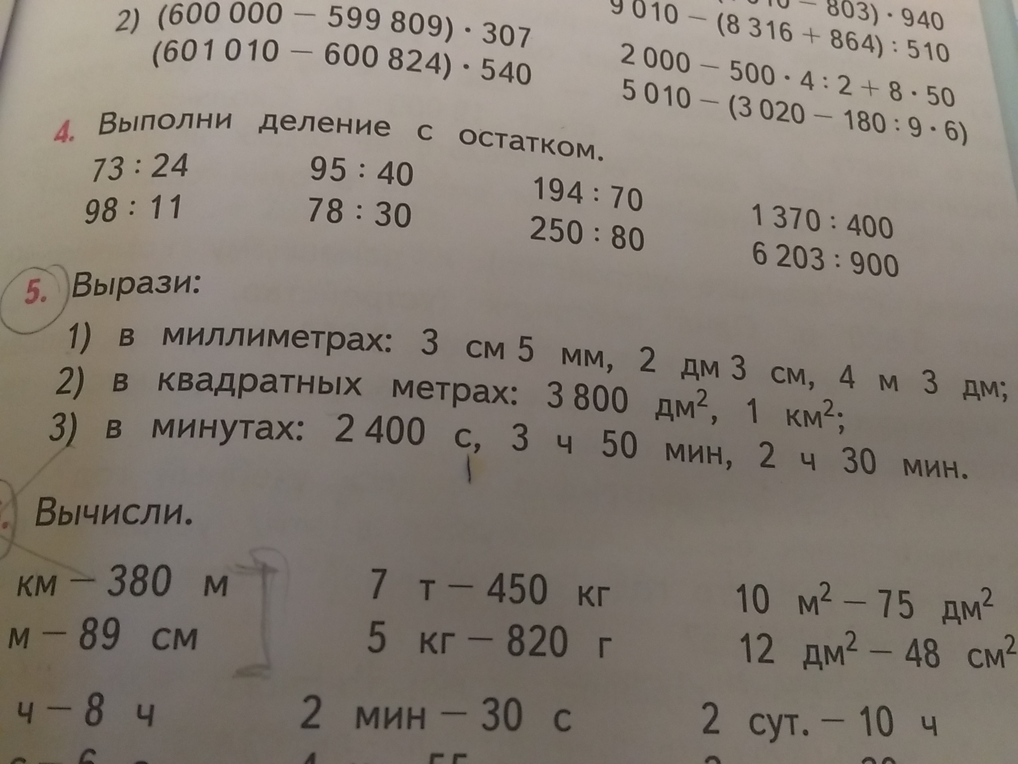 4 м 3 дм = 43 дм = 430 см = 4300 мм