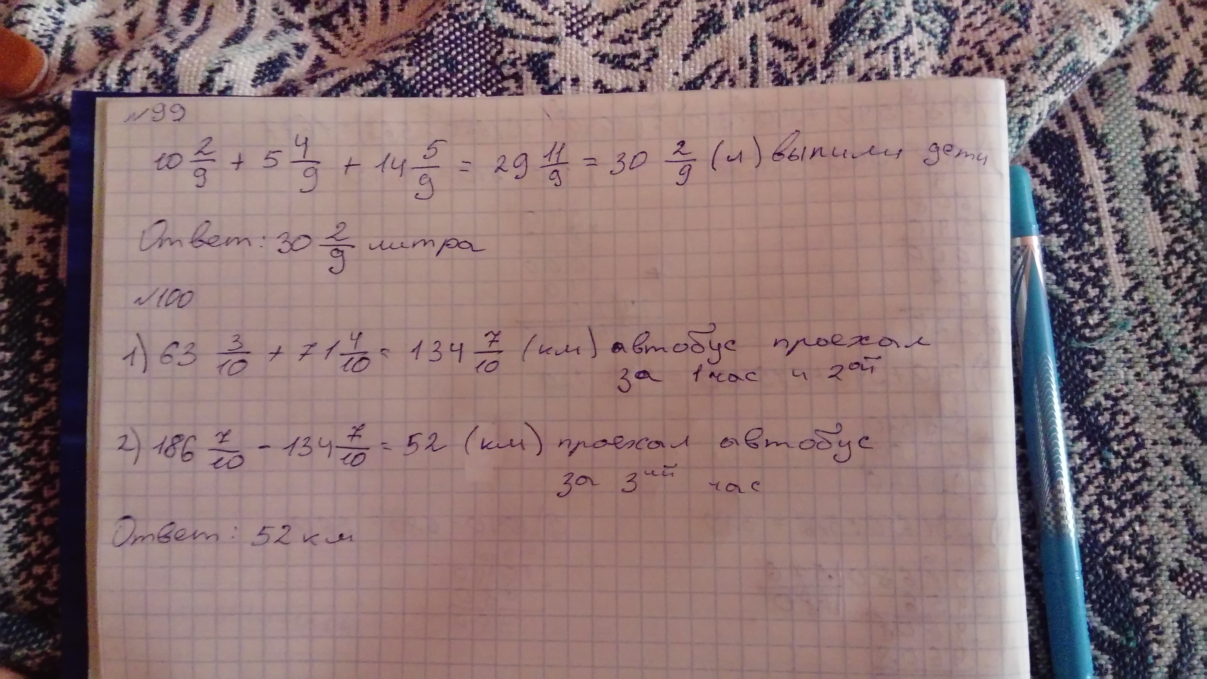 (Теперь из общей суммы вычитаем первый и второй часы*) - 186 7/10 - 134 7/10=52 (км) - проехал автобус за третий час своего движения