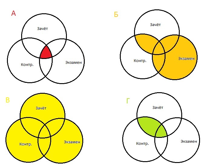 А - отобразит страницы, которые одновременно относятся и к контрольным, и к зачётам, и к экзаменам - самый узкий диапазон поиска.