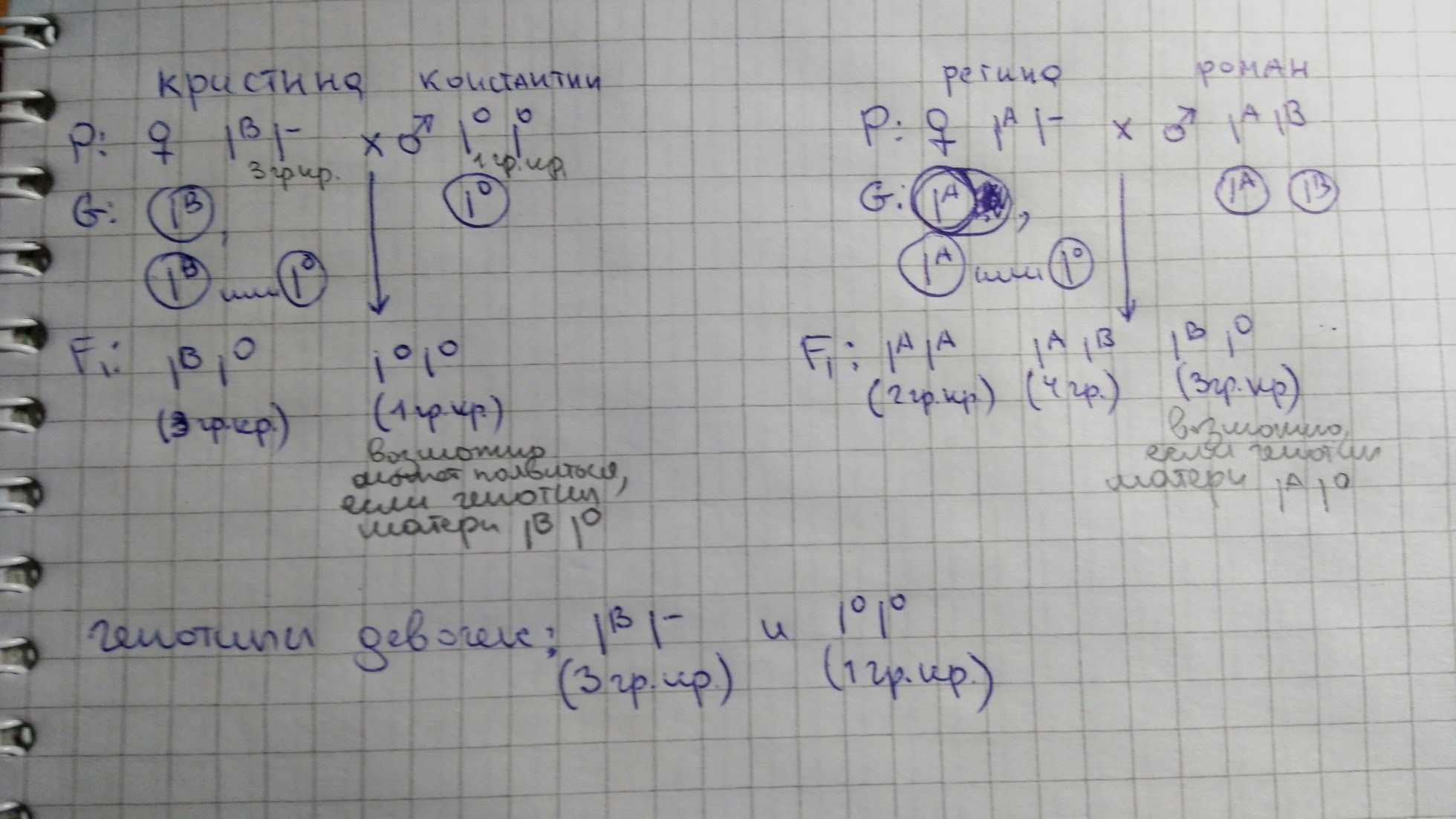 Только у Кристины и Константина возможны дети с первой группой крови. Если вдруг что-то непонятное на фотографии - отвечу в комментариях)
