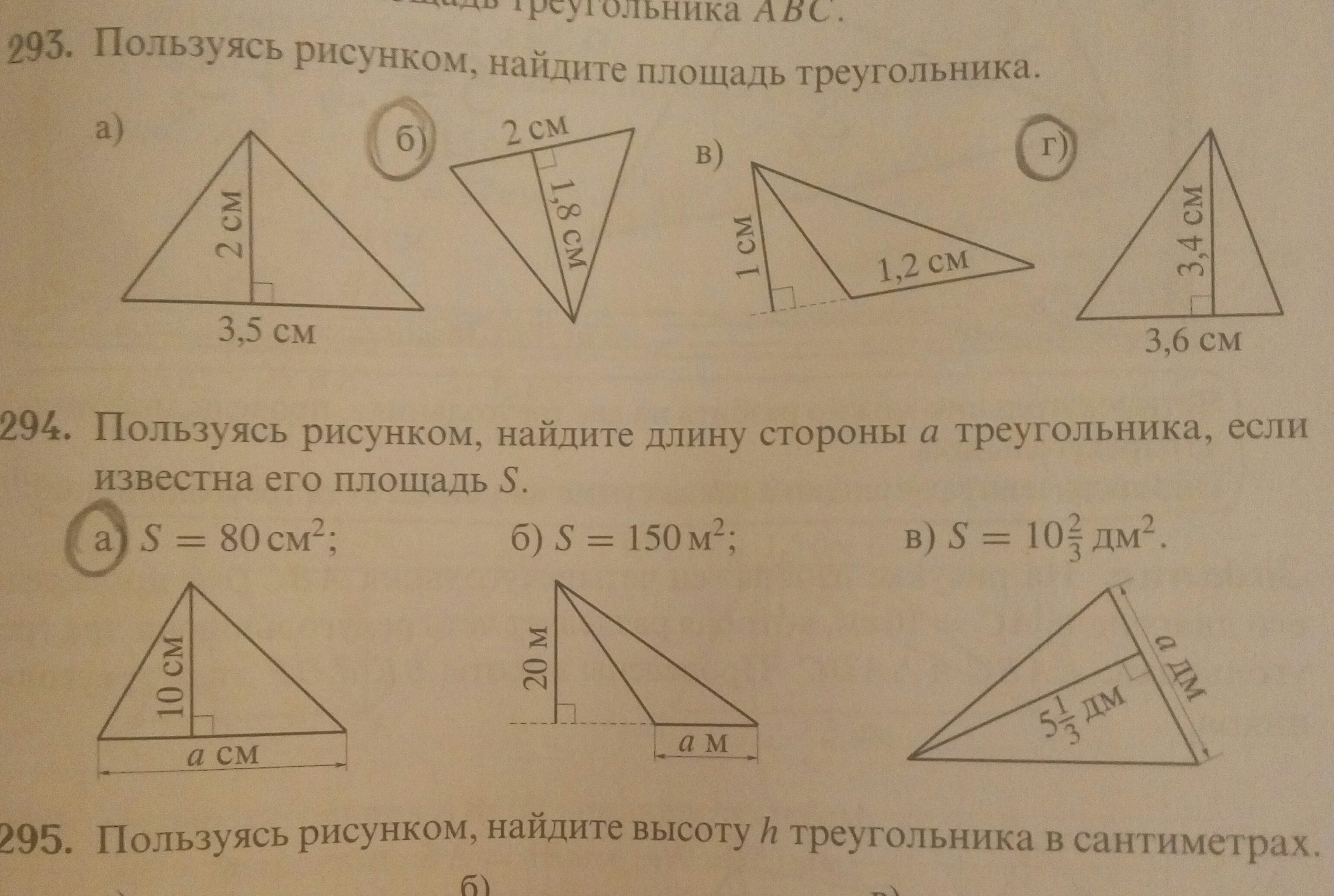 г)S=1/2·3,6·3,4=6,12 см²