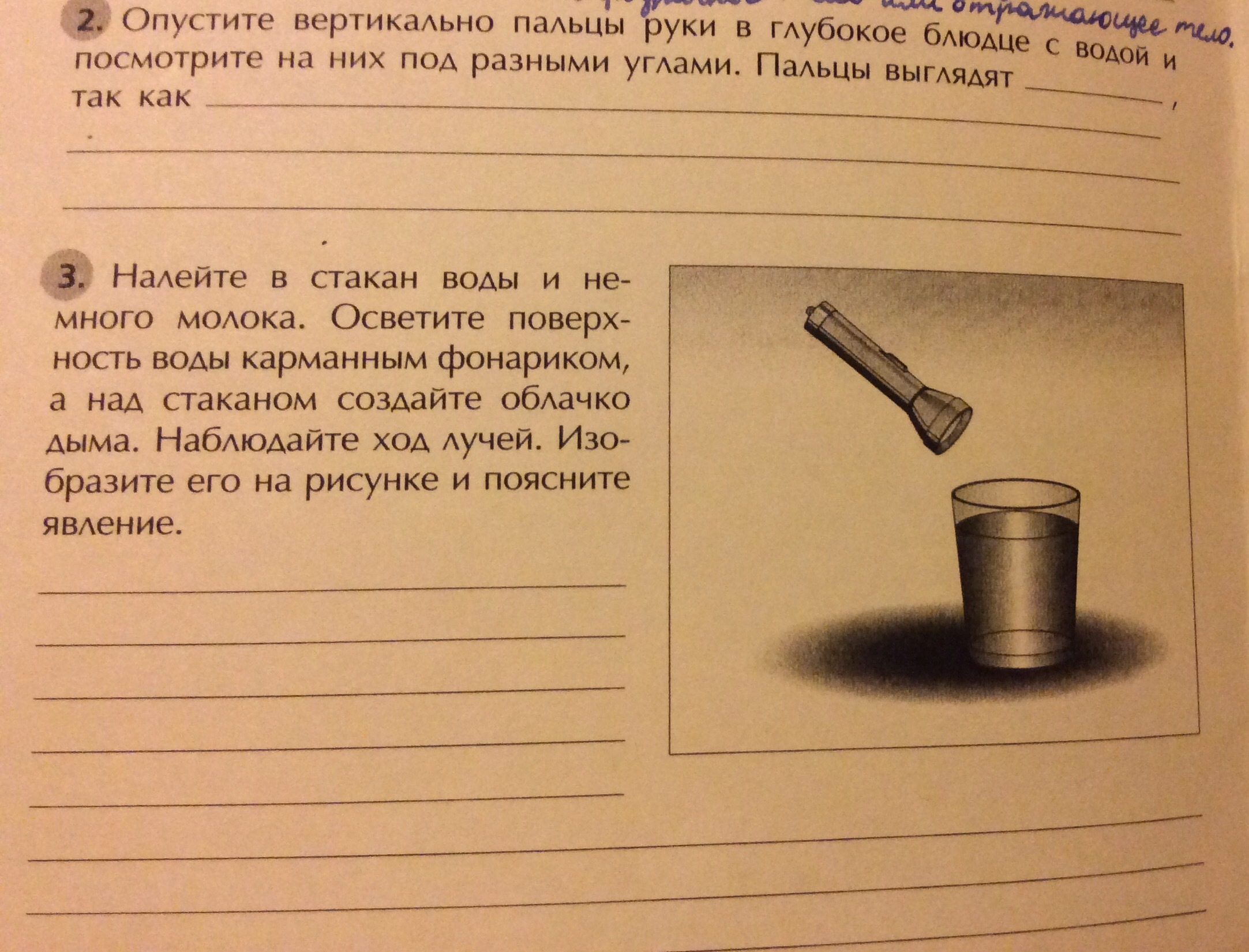 3. ...Лучи исходящие от фоноря будут проникать сквозь сьакан с жидкостью и направление тени будет отдалённой от стакана
