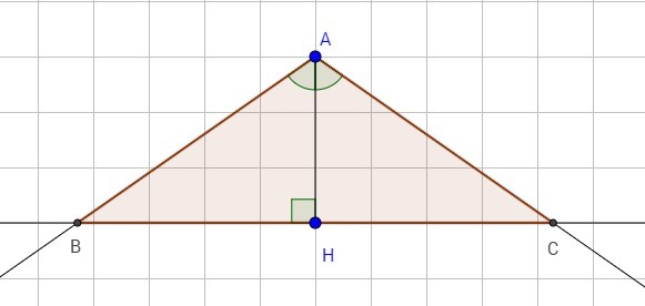 3. Строим прямую ⊥ АН, проходящую через точку Н. Точки пересечения построенных лучей и прямой будут двумя оставшимися вершинами треугольника (точки В и С на рисунке).