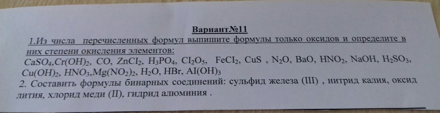 2) Fe2S3, K3N, Li2O, CuCl2, AlH3