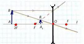 Изображение A₁B₁ мнимое, прямое, уменьшенное.