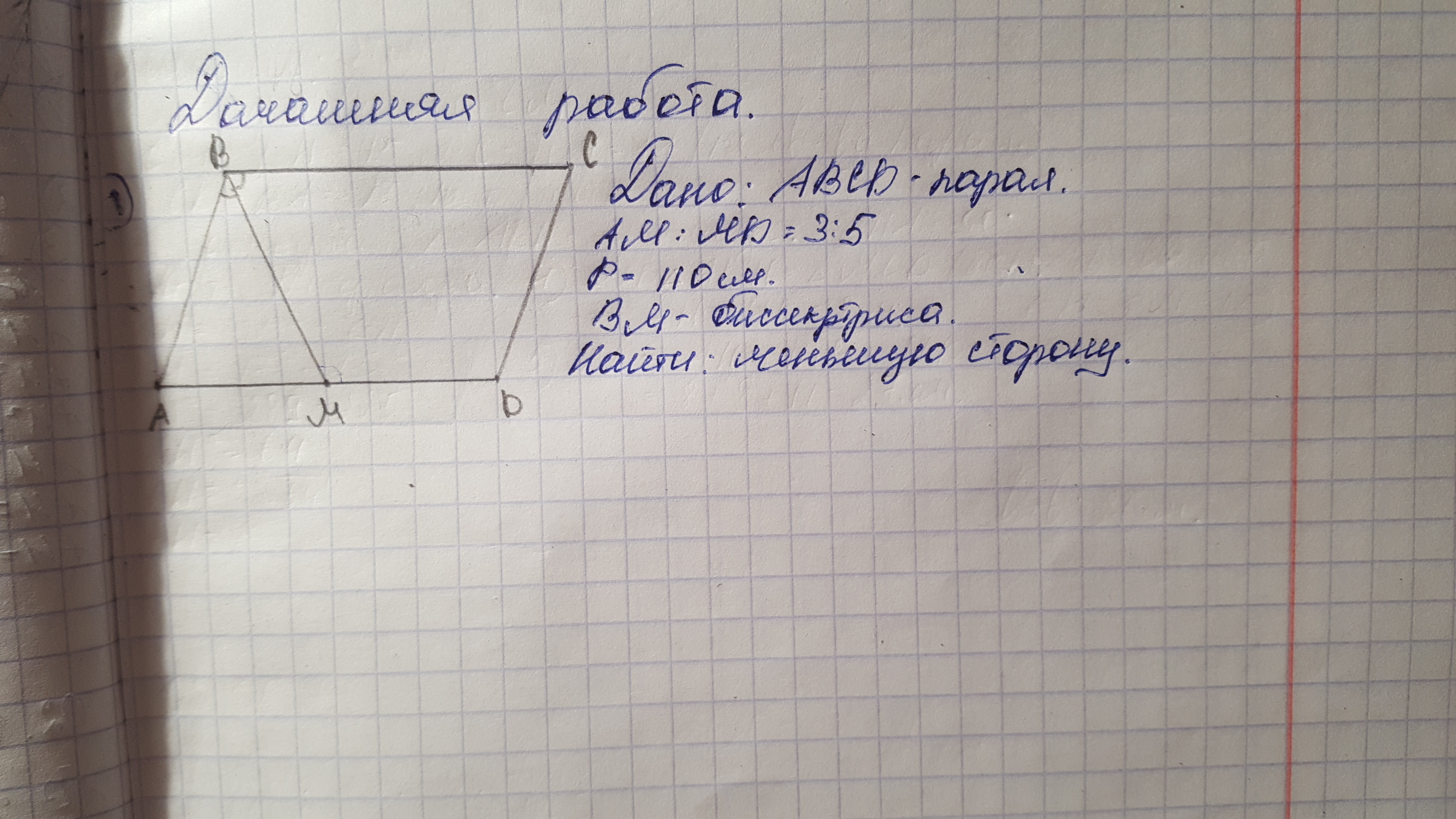 ответ 12.222ч меньшая сторона