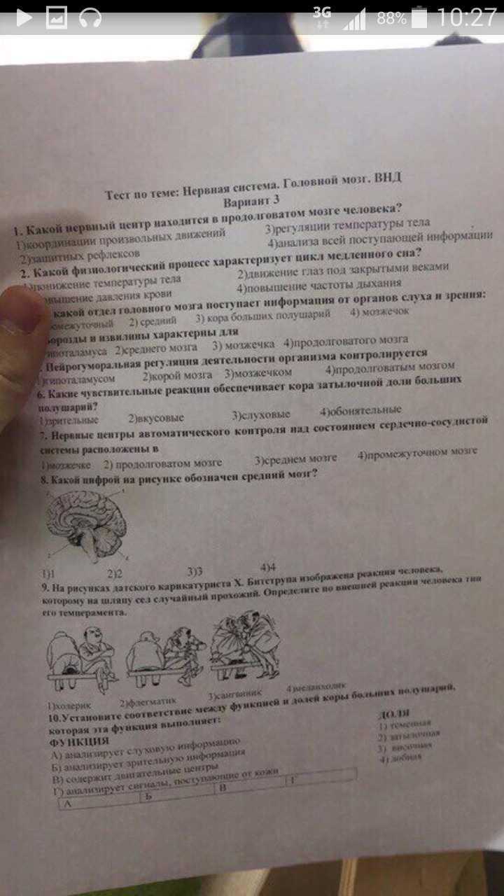 небольшой тест по биологии 8 класс