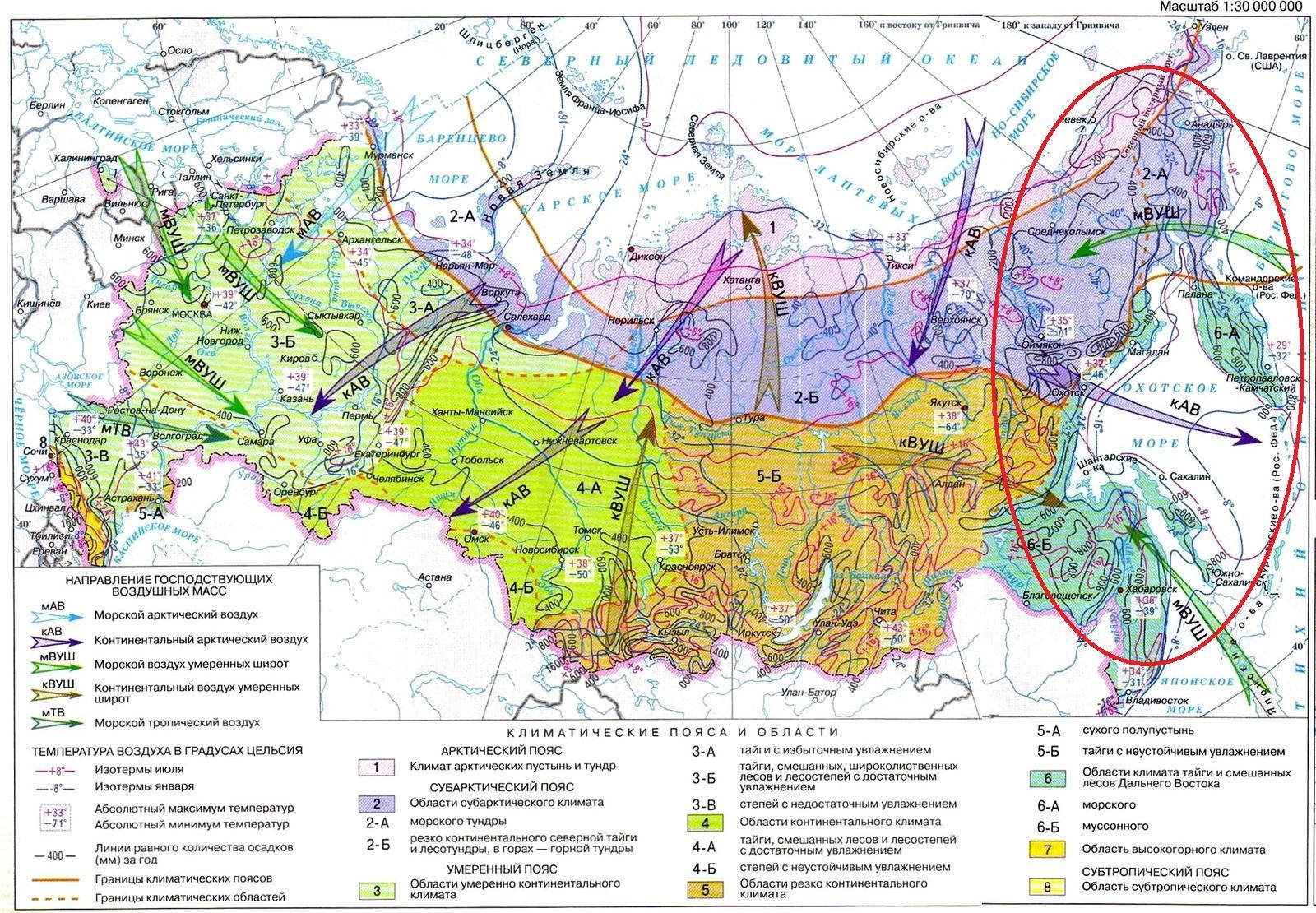 Из-за своей большой протяжённости с севера на юг температуры сильно отличаются.Так средние температуры января колеблются в пределах -30° на север и -20° на юге.А температуры в июле от +8° на севере до +20° на юге.