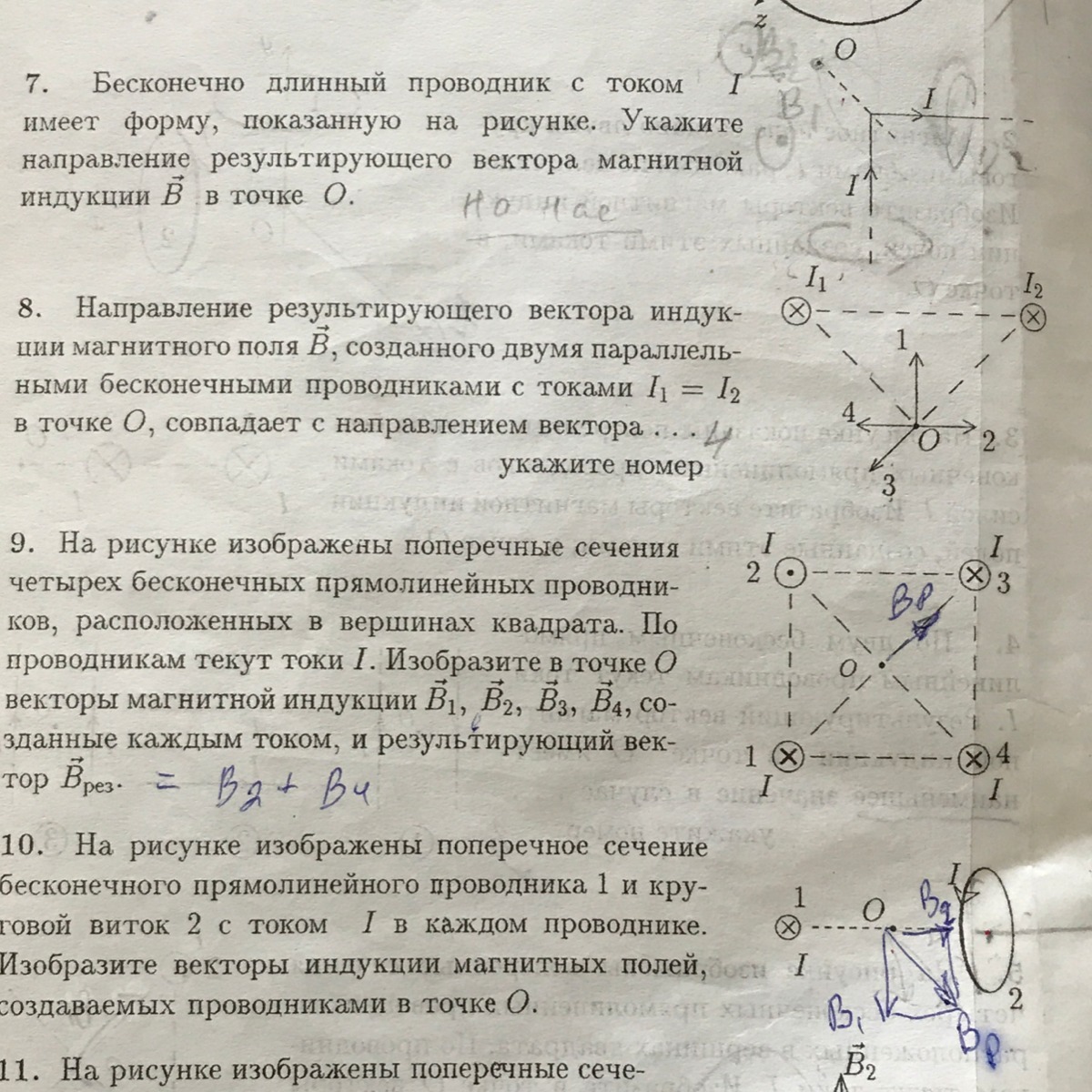 Вектор магнитной индукции от проводника с током 1 по правилу правой руки направлен от точки О в сторону цифры 3