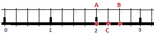 помогите пожалуйста по математике даны точки А(2) и В (2 1/2) найдите коортиинаты точки С- середины отрезка АВ точка D - середины отрезка СВ точки У середины отрезка CD изобразите эти точки на координатном луче