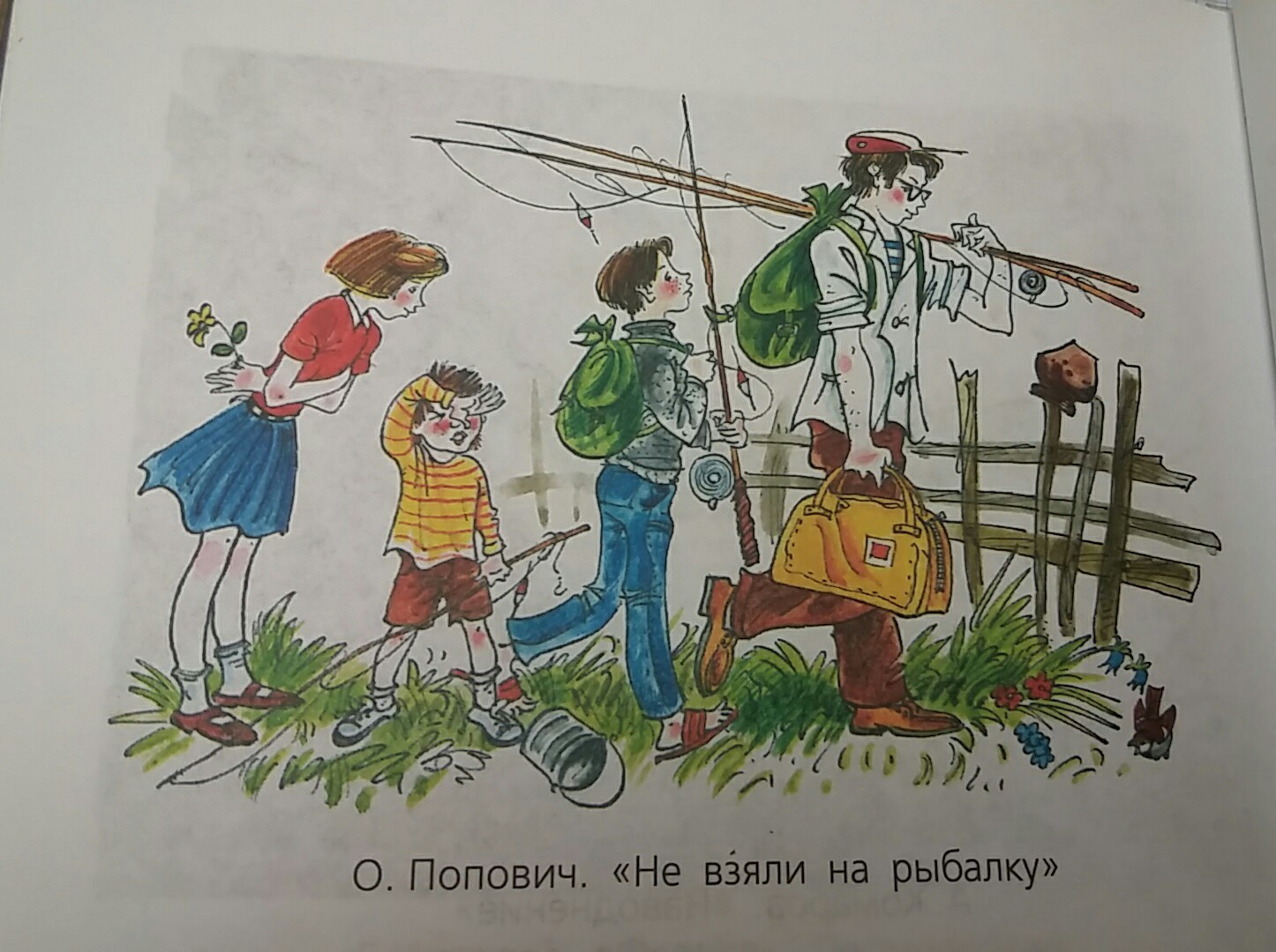 Было утро.Мальчики собирались идти на рыбалку.Но как всегда Миша проспал.Он проснулся потянул руки и посмотрел на часы и он выскочил с кровати, пошел чистить зубы потом привёл себя в порядок одел на себя кофту и шорты на ноги кроссовки и захватил собой удочку и ведро и выбежал на улицу.Мальчики его ждали в саду."Где же он?"-сказал Петя."Наверно опять спит"- сказал Саша. Петя говорит-"Давай без него". И они пошли в путь на рыбалку . Но в этот же миг прибежал Миша и крикнул-"Я пришел меня возьмите ". И Петя сказал:"Нет ты проспал мы тебя не возьмем ". А Мише стало обидно и говорит "Ну возьмите меня пожалуйста".Нам идти семь километров, ты станешь и будешь ныть - сказал спокойно Саша. И Миша начал плакать. Но мальчики его слушать больше не стали и ушли на рыбалку ловить рыбу. И вот вдруг пришла Катя и сказала: " Привет Миша что ты плачешь?" Миша отвечает Кате: " Меня мальчики не взяли на рыбалку. А Катя спросила :"Какие мальчики." Миша ответил : Петя с Сашей.Тогда Катя ему сорвала цветок и дала ему . И он ушел с Катей домой.Но та обида Мише почему -то запомнилось крепко.