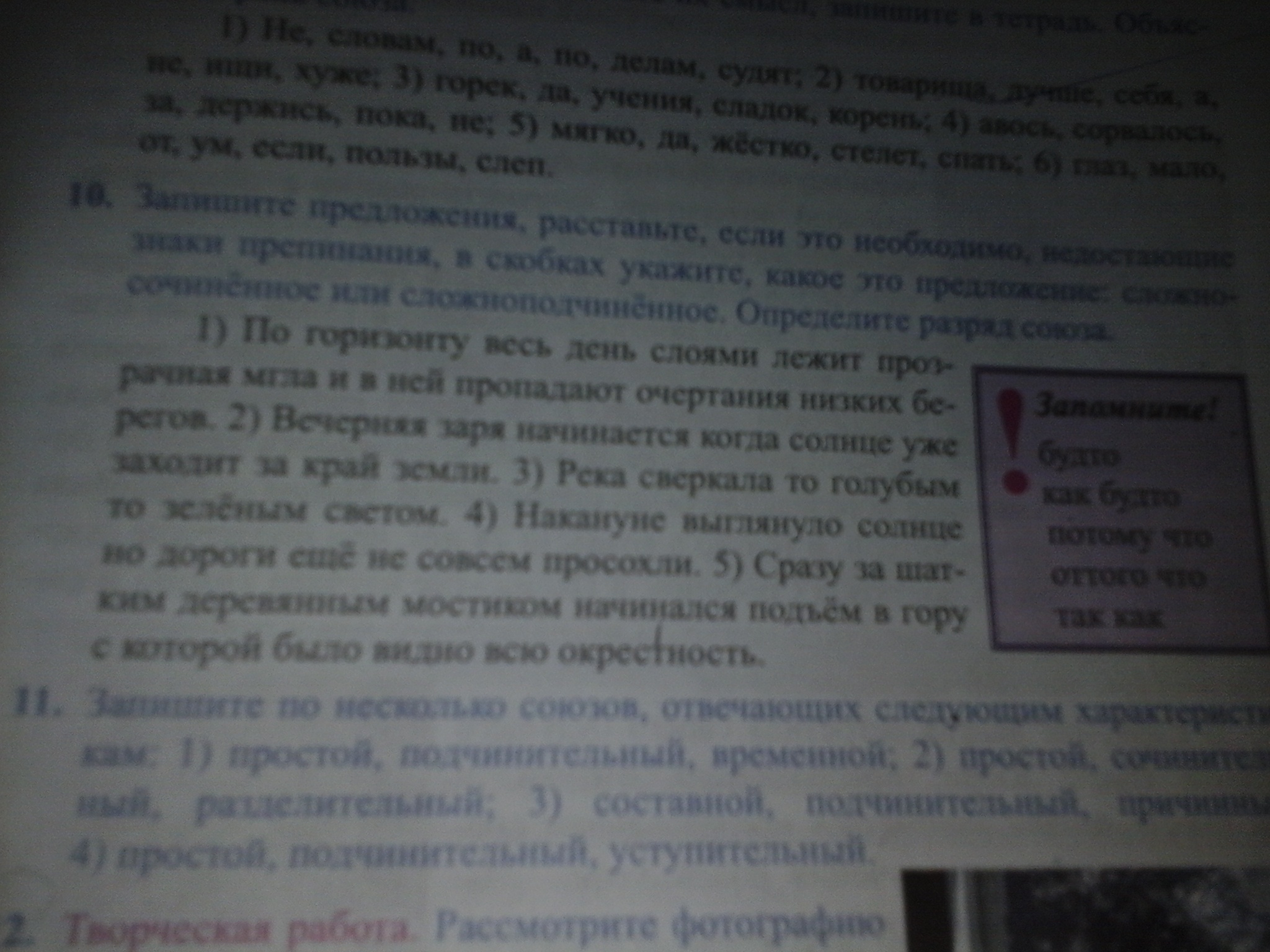 5) Сразу за шатким деревянным мостиком начинается подъём в гору, с которой было видно всю окрестность. (СПП, которой - союзное слово)