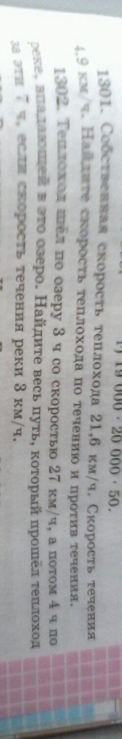 1) 21.6+4.9=26.5 (км/ч) V теплохода по течению