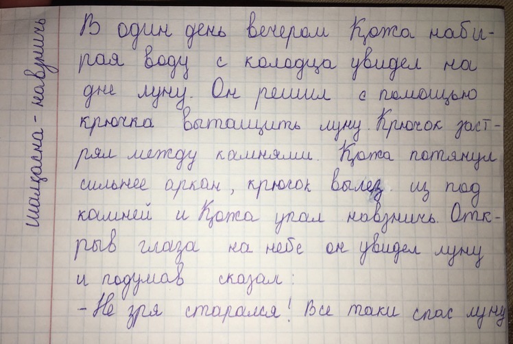 Бір күні кешке Қожа құдықтан су алып жатып, түбінен айды көреді. Ол ілгек арқылы айды алуға тырысады. Ілгек тастардың арасында қалып қалады. Қожа арқанды қатты тартқанда, ілгек тастардың арасынан сырғып шығып, Қожа құлап қалады. Көзін ашып аспанға қарағанды айды көріп, былай дейді: