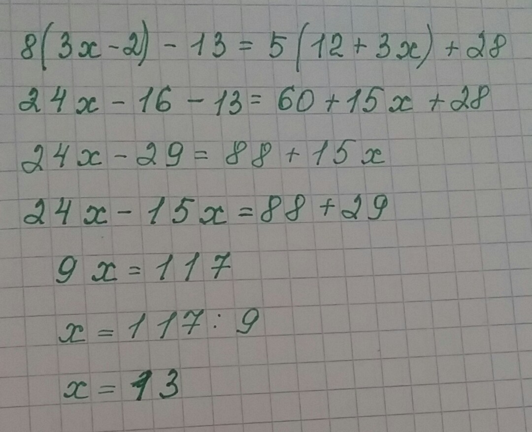 8*(3x - 2) - 13 = 5* (12 + 3x) + 28