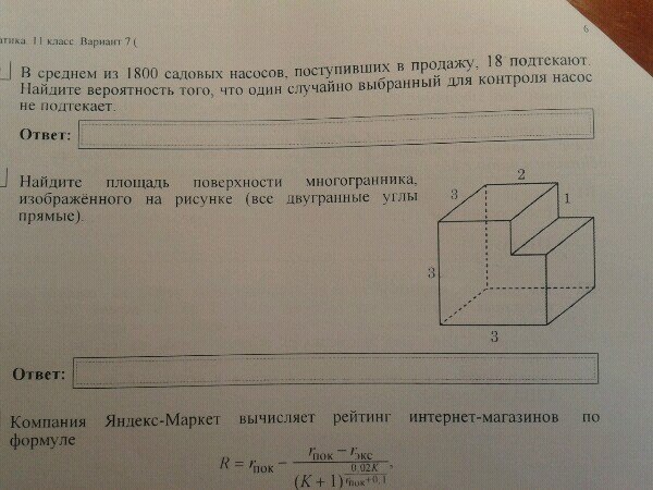 Найдите площадь поверхности многогранника, изображенного на рисунке, все двугранные углы которого прямые.