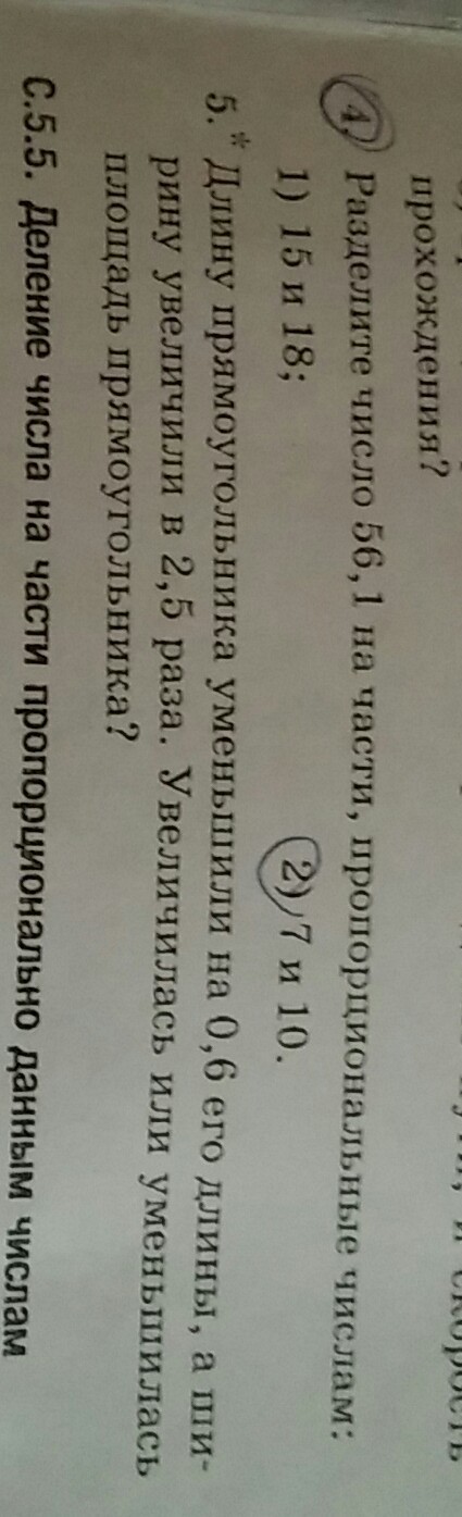 Всего частей должно быть 7+10=17. Находим одну часть: 56,1:17=3,3. Находим 7 частей: 3,3*7=23,1. Находим 10 частей: 3.3*10=33