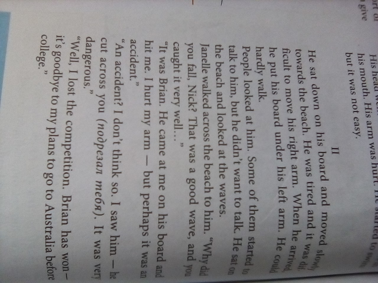 " Это был Брайан. Он приплыл на своей доске и ушиб меня. Я повредил руку - но возможно это был несчастный случай."