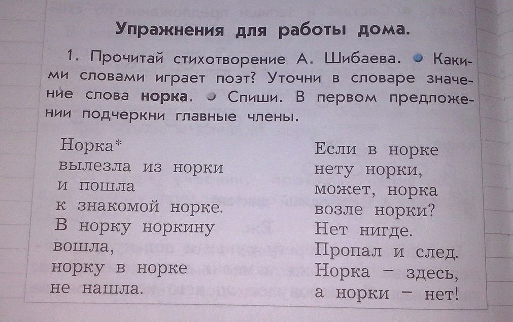 Норка - подлежащие выражено именем существительным. Вылезла - сказуемое выражено глаголом. Из норки - подчёркиваем _._._. ( пунктиром с точкой) из - предлог. норки- сущ. И - союз. Пошла - сказуемое выражено глаголом. К знакомой - определение выраженной именем прилагательным. к- предлог. Норке- дополнение выражено именем существительным. (подчёркиваем _._._.)