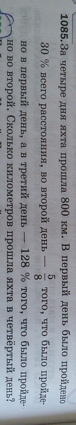1) 800*0.3=240(км)-прошла яхта в первый день.
