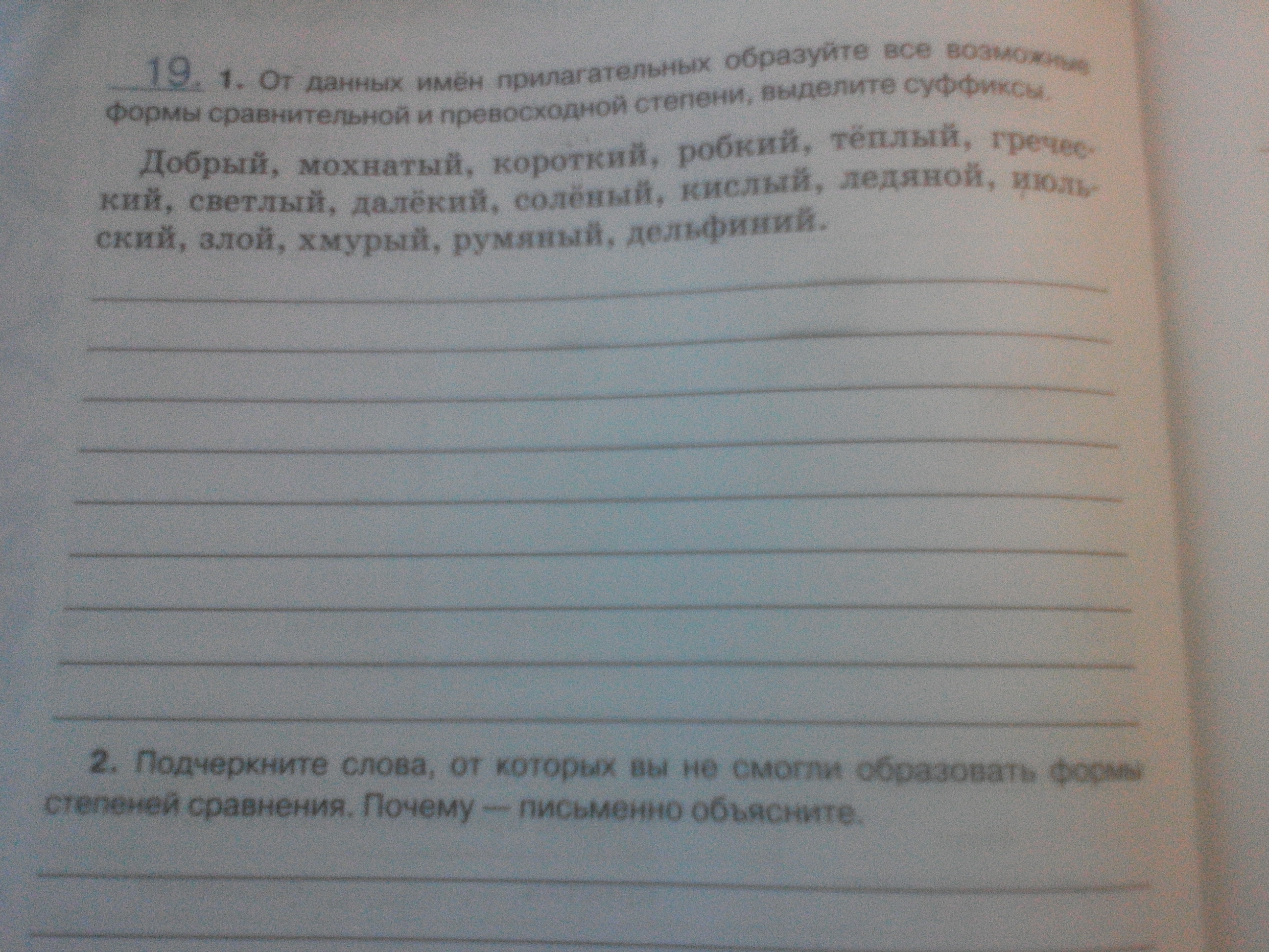 От данных имён прилагательных образуйте все возможные формы сравнительной и превосходной степени, выделите суффиксы. (1 и 2 задания пожалуйста)