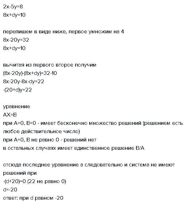 при А=0, В=0 - имеет бесконечно множество решений (решением есть любое действительное число)