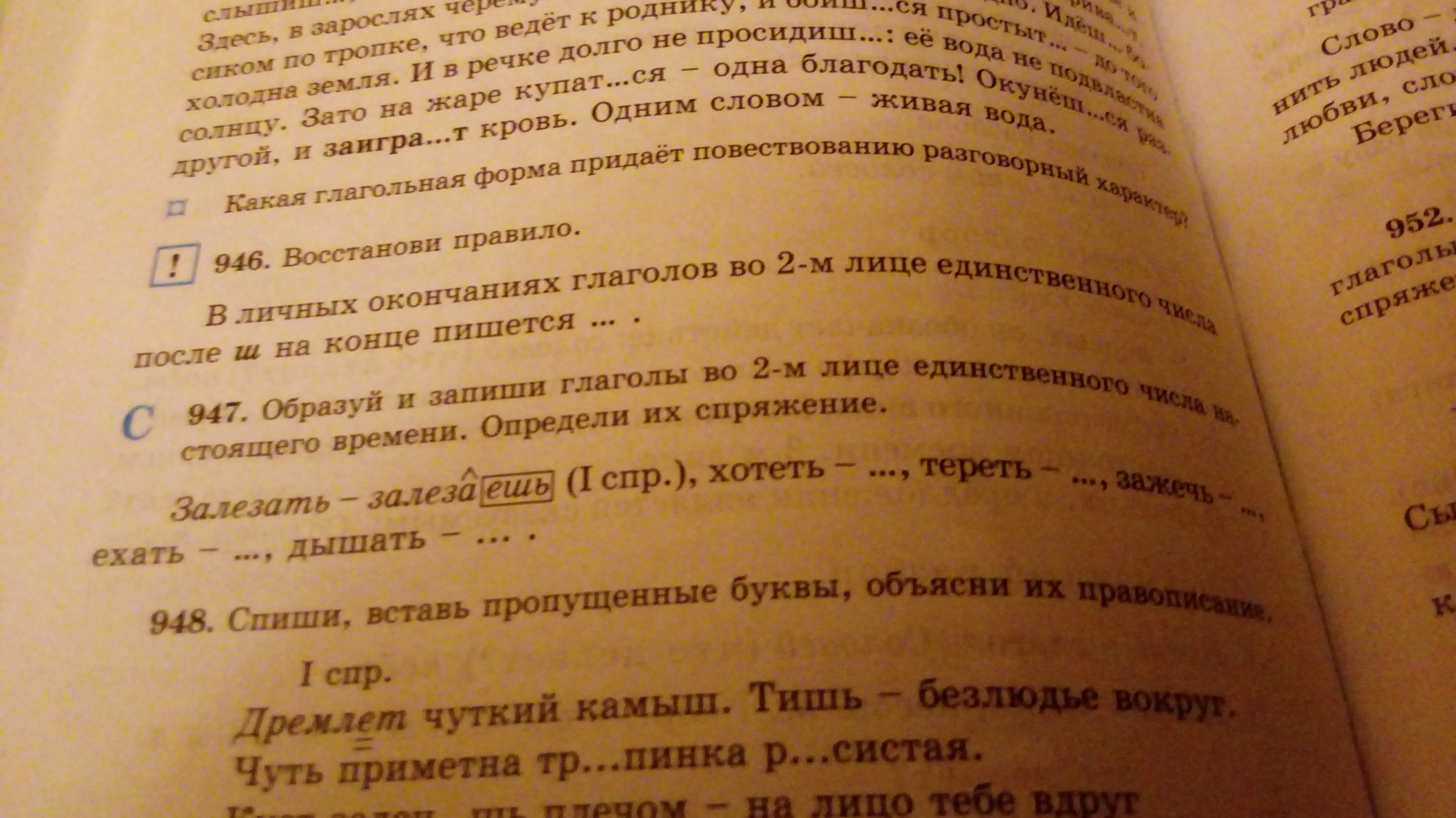 упр 947 Образуй и запиши глаголы во 2 м лице едиественного числа настоящего времени .Определи. их спряжение