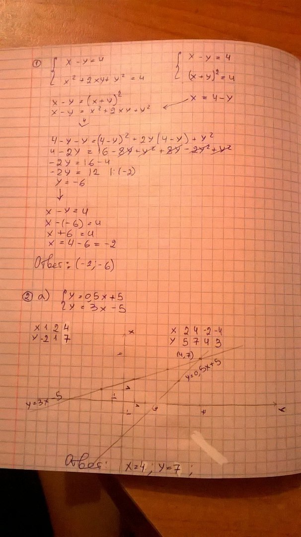 2. тут чертим график функций( под а обрати внимания на обозначения осей) ищем точки пересечение графиков это и есть решение