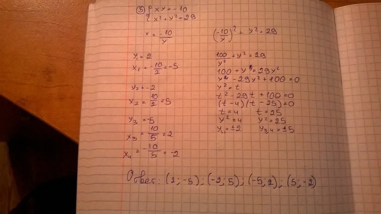 есть два уравнения, из простого выражаешь одну переменную( например х) и подставляешь во второе уравнение, находишь y и подставляешь обратно в х.