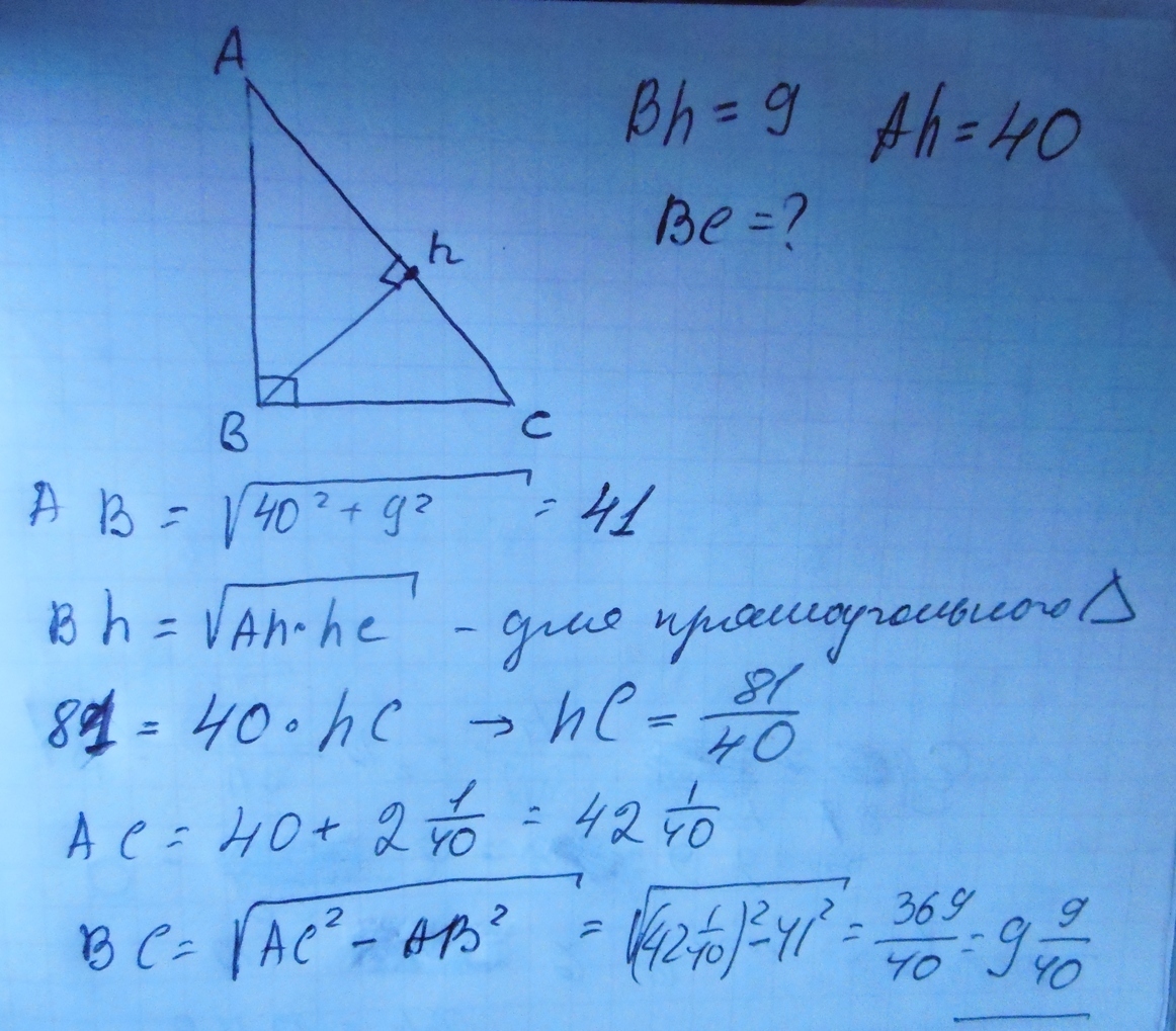 BC = AB*BH/AH = 41*9/40 = 369/40 = 9 9/40 = 9,225