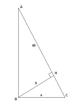 точка h является основанием высоты проведённой из вершины прямого угла b треугольника abc к гипотенузе ac найдите bc если bh=9 ah=40