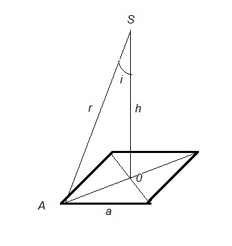 r² = h²+OA² = h² + a²/2 = 2,2² + 1,3²/2 ≈ 5,7 м²