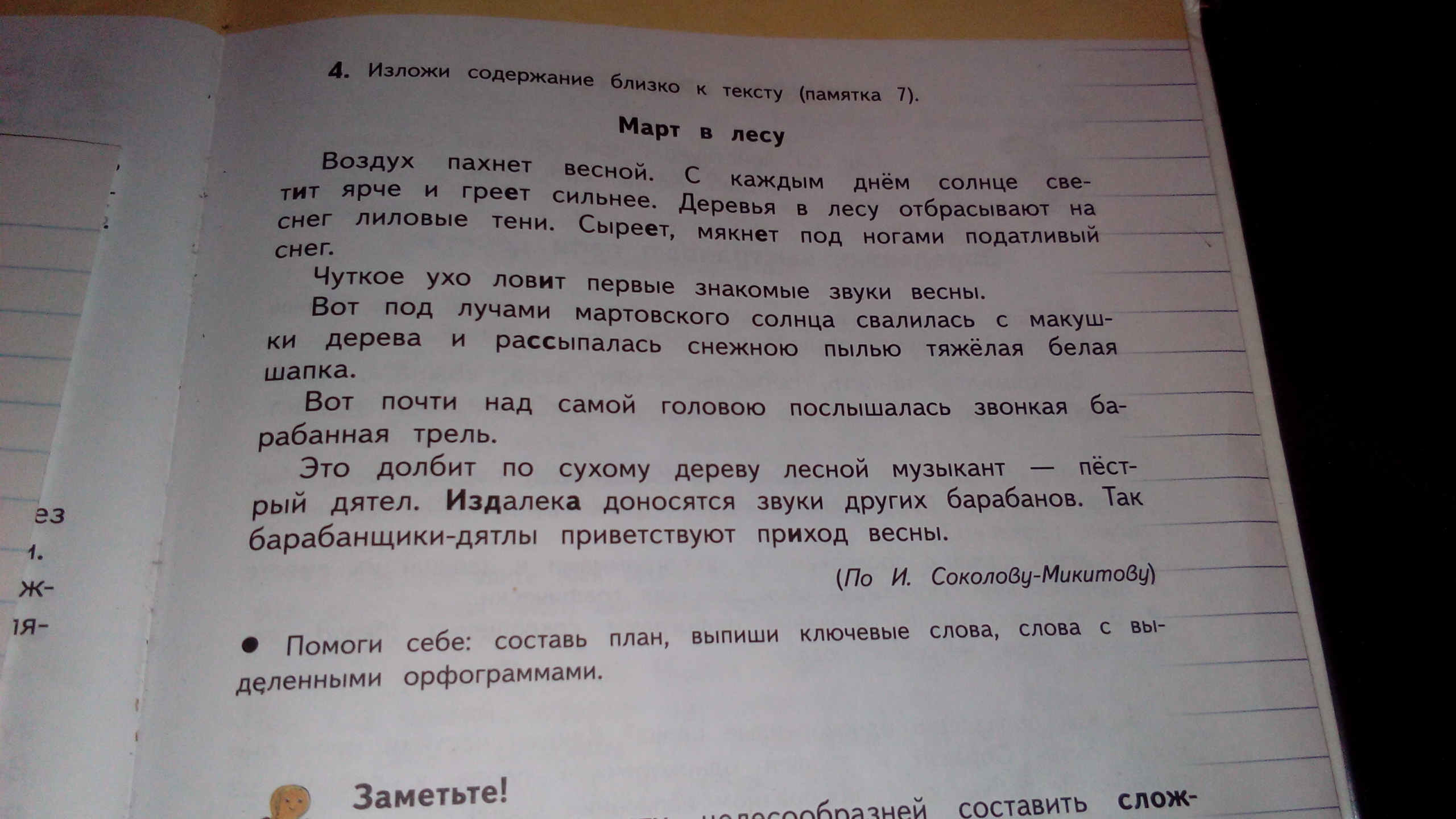 Составь план.Выпиши ключевые слова , слова с выделенными орфограммами.