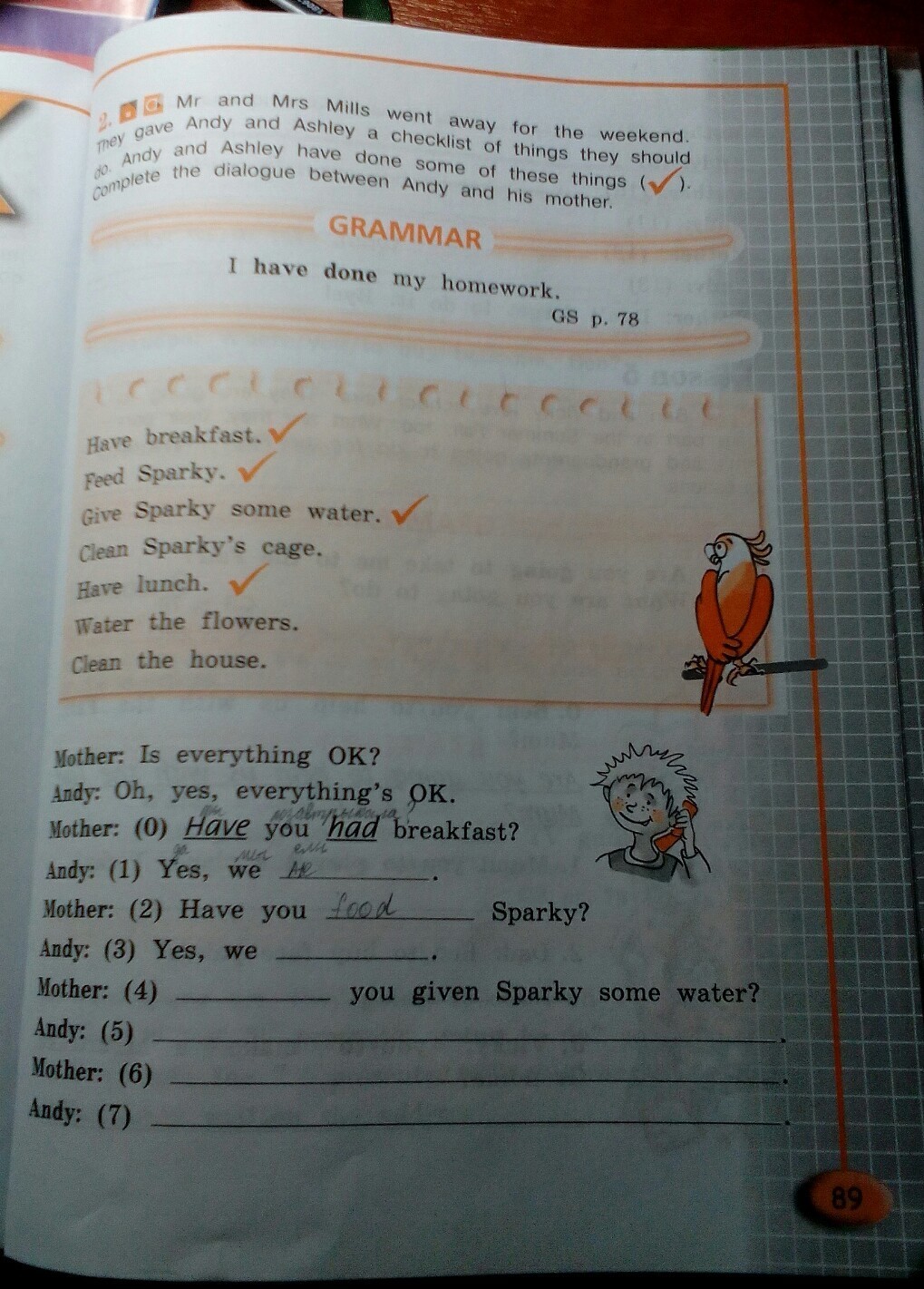 4.Have you cleaned Sparky's cage?