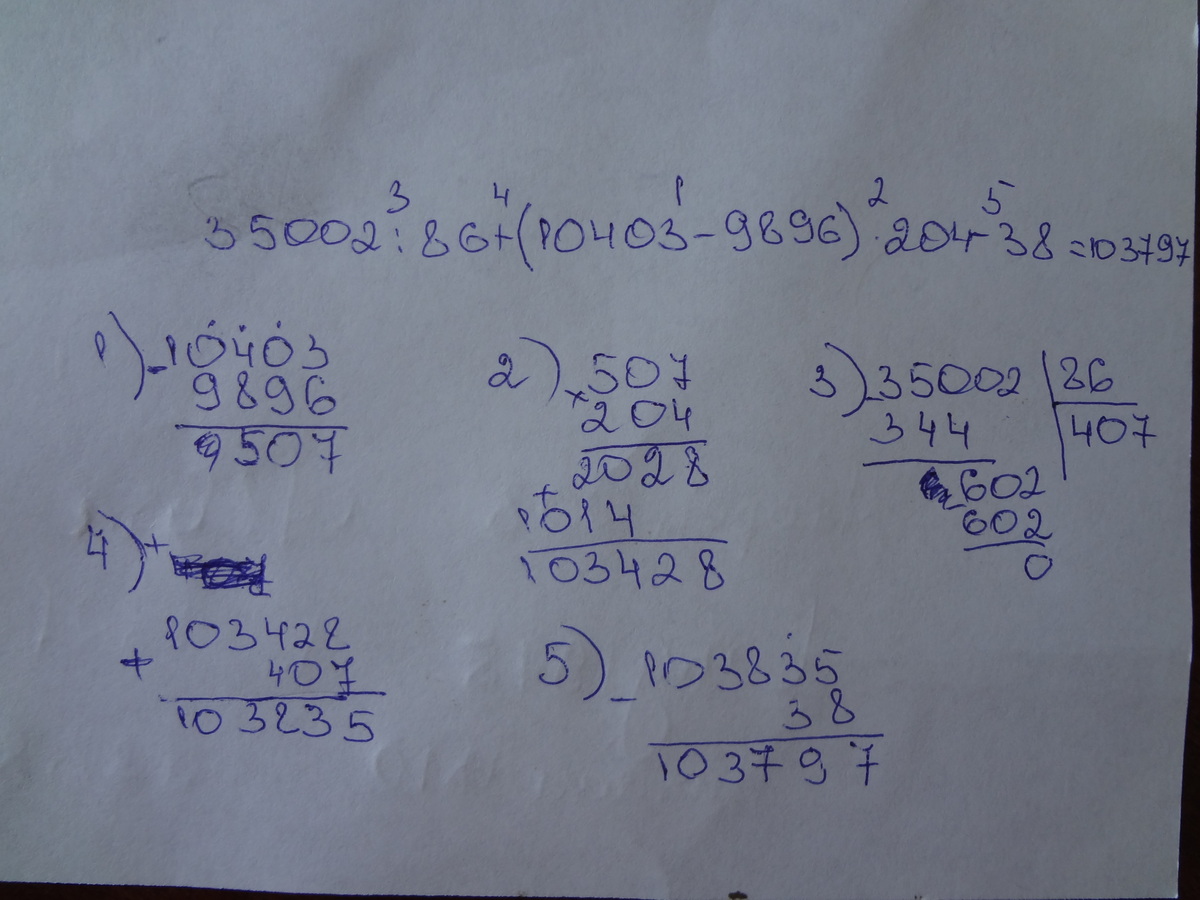 35002:86+(10403-9896)*204-38 решите столбиком! Это важно. Уже скоро идти к репетитору! Буду благодарна.