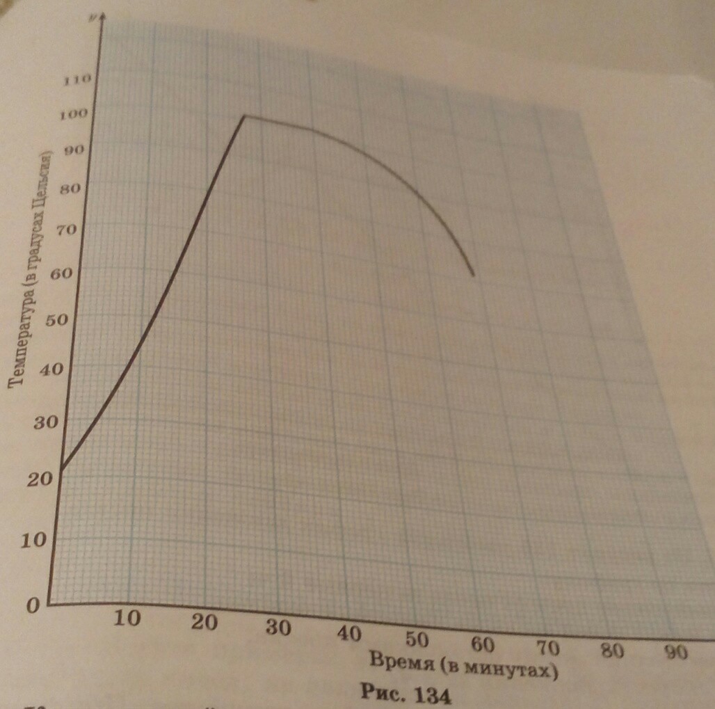 На рисунке 134 показан график температуры воды в электрическом самоваре. На прямой х откладывали время в минутах после включения самовара, а на прямой у-температуру воды в градусах Цельсия.