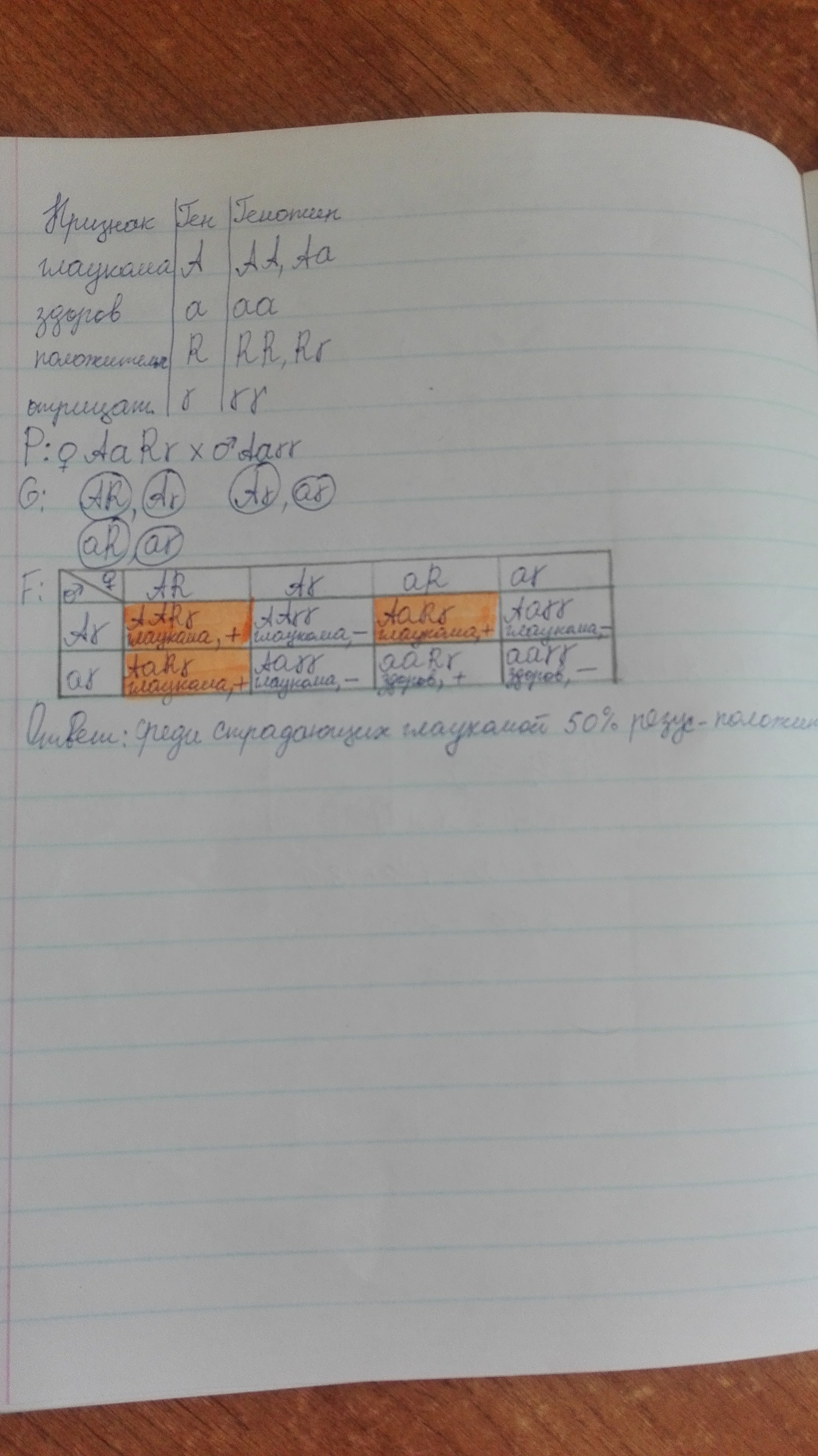 Ответ: 50% резус-положительных среди страдающих глаукомой.