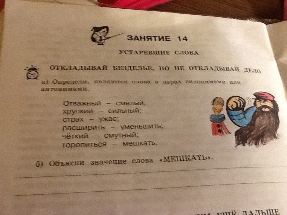 Б)объясни значение слова" мешкать".