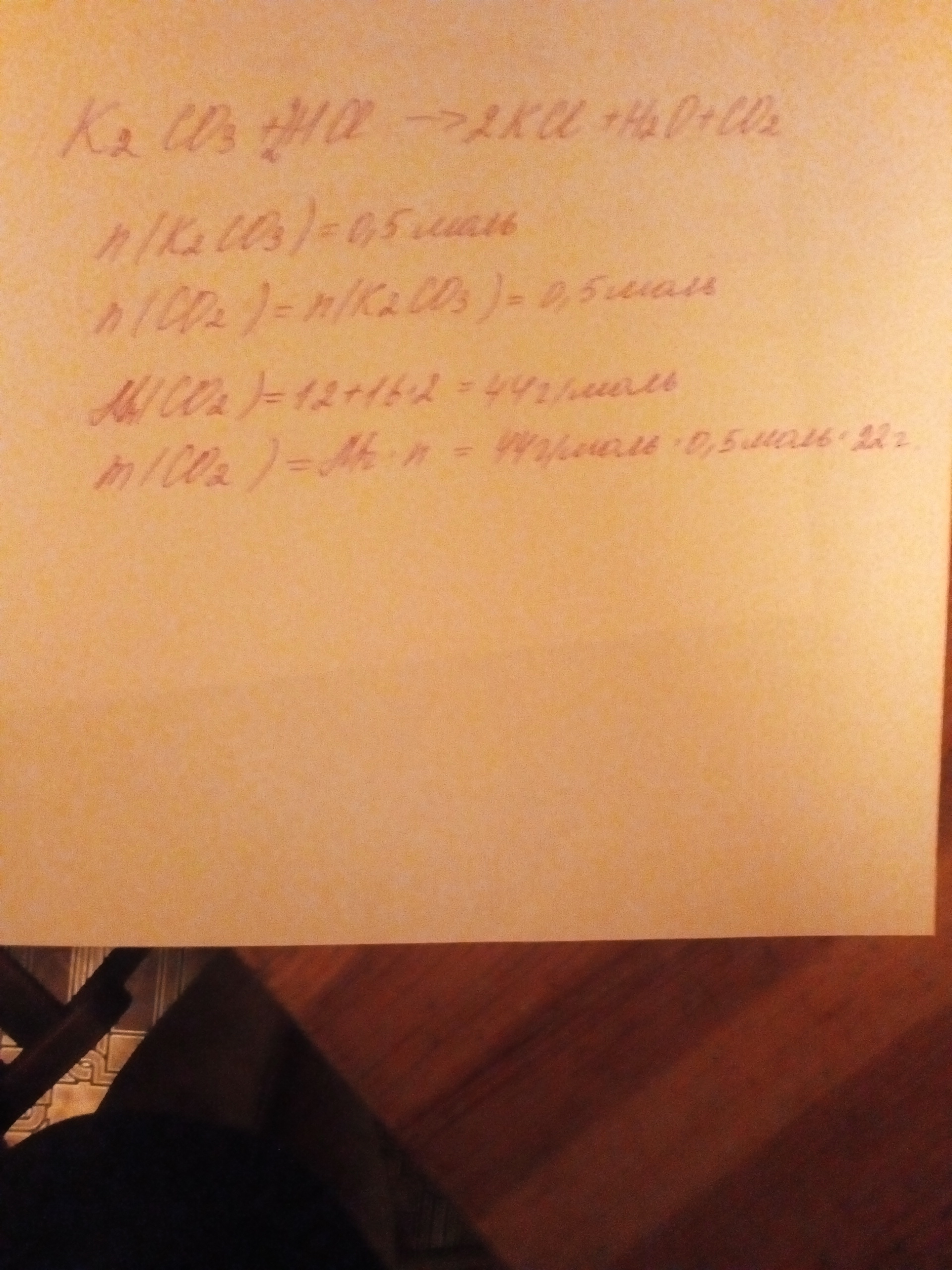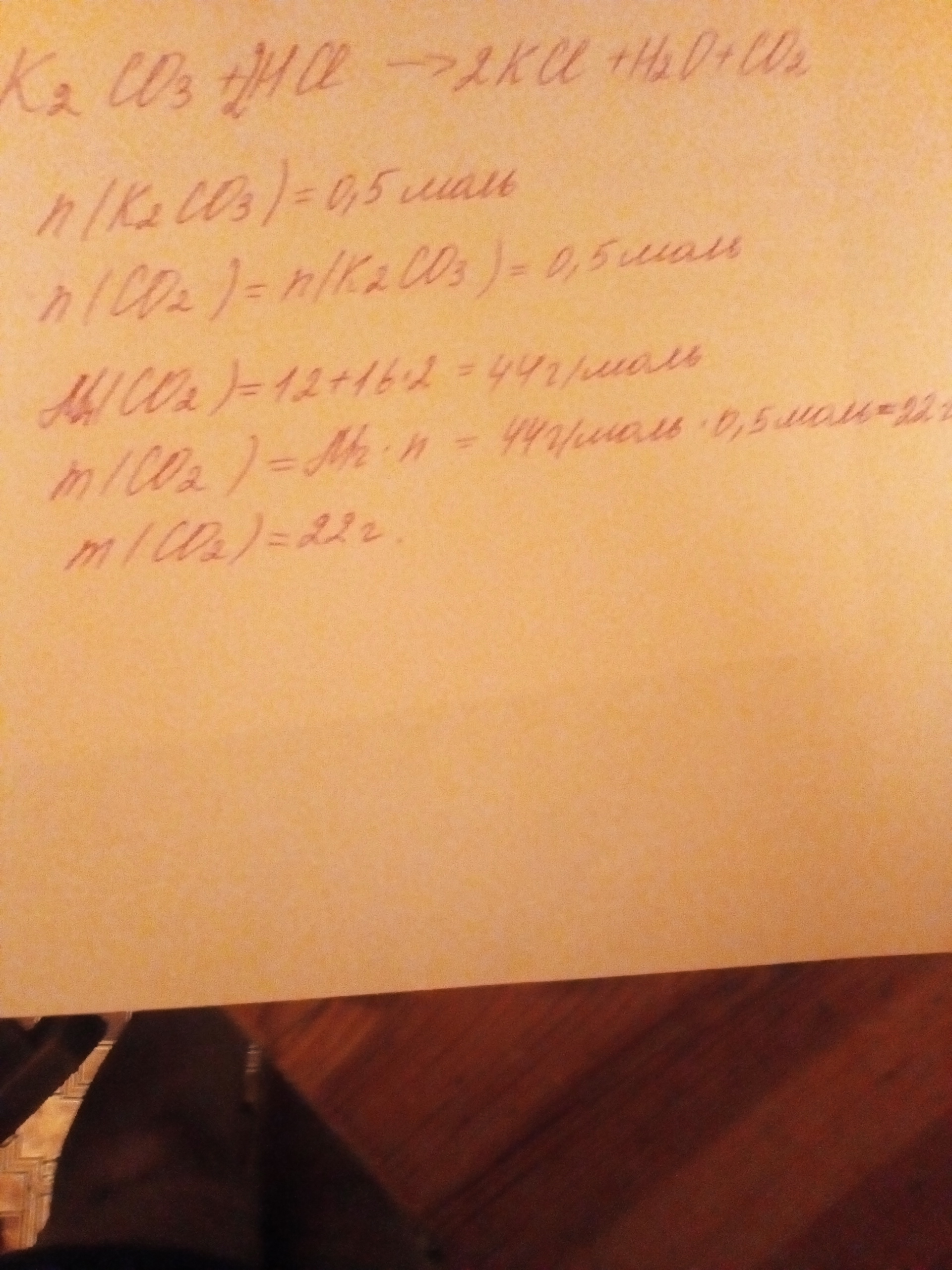 ПОМОГИТЕ ПЛИЗЗЗ определите массу оксида углерода (IV) полученнного при ваимодействии 0,5 моль карбоната калия с соляной кислотой