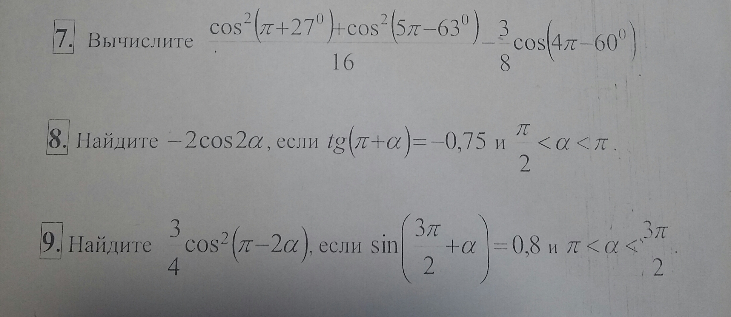 найти: 3/4 * cos²(π-2α) = 3/4 * cos² 2α = ?