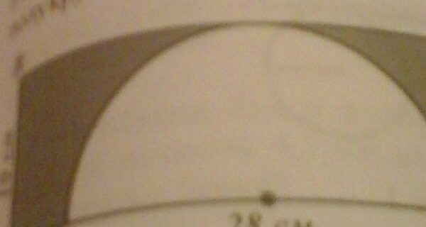 в прямоугольнике ABCD AB=10см, AD=28см.Найдите лощадь закрашенной части внутри прямоугольника. На рисунке изображен полукруг с центром в середдине отрезка AD и радиусом 10см