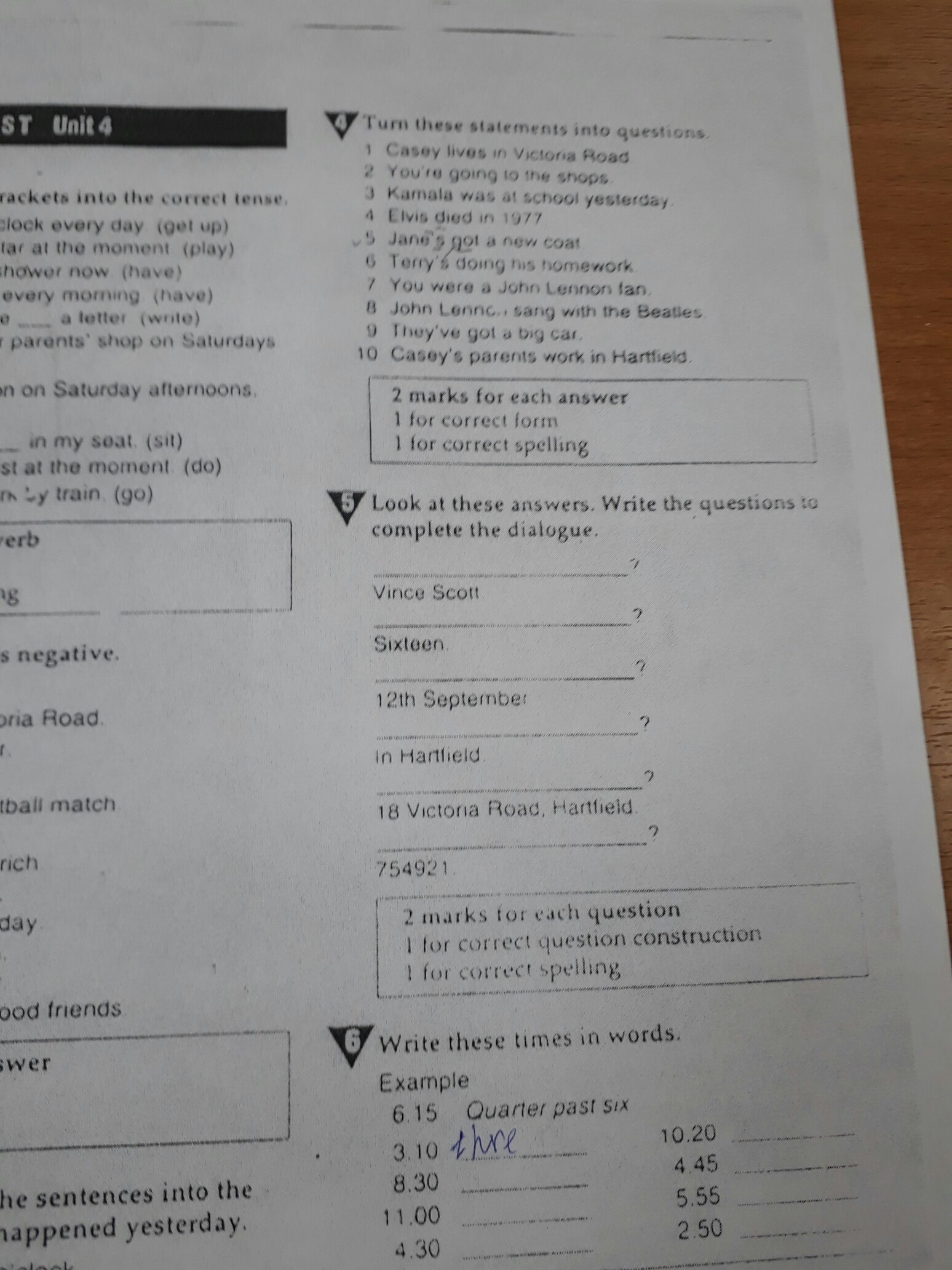 2 she had a shower. 3.she cached the bus to school 4. she arrived at ten to nine.