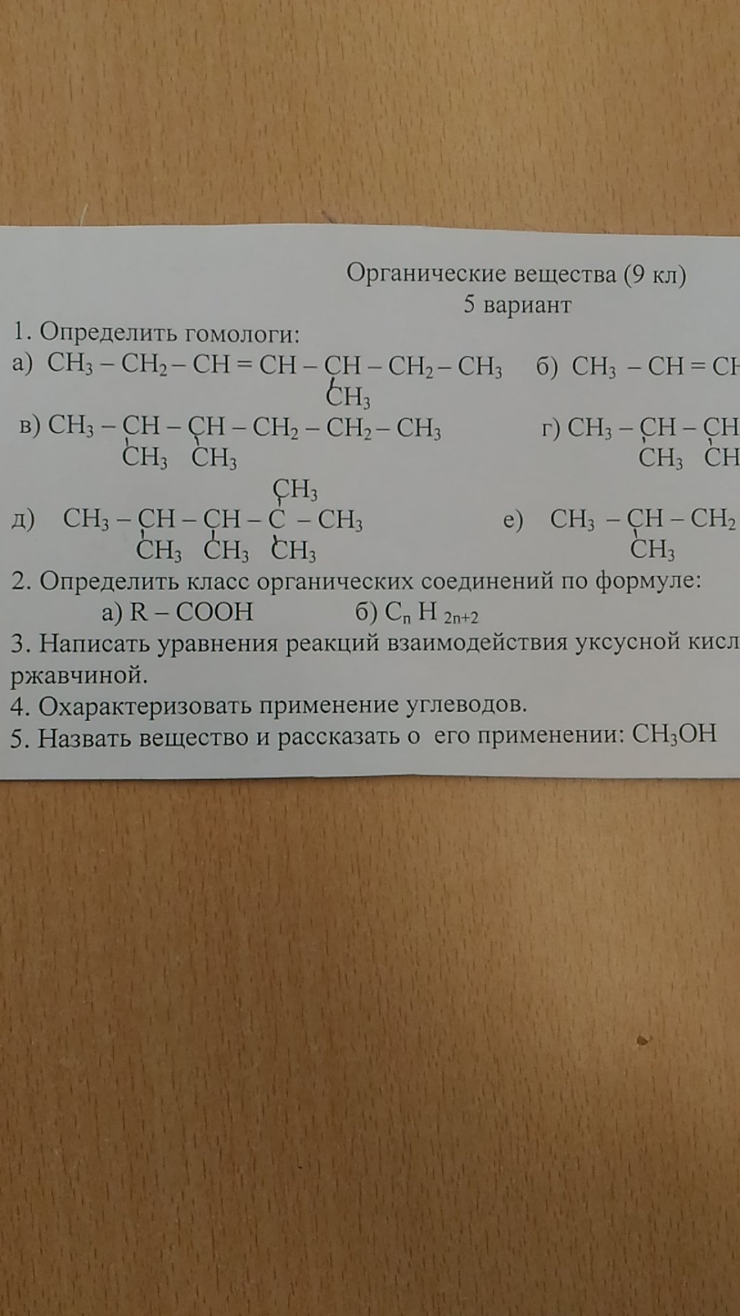 определите класс органических соединений по формуле: а) R-COOH б)Cn H 2n+2