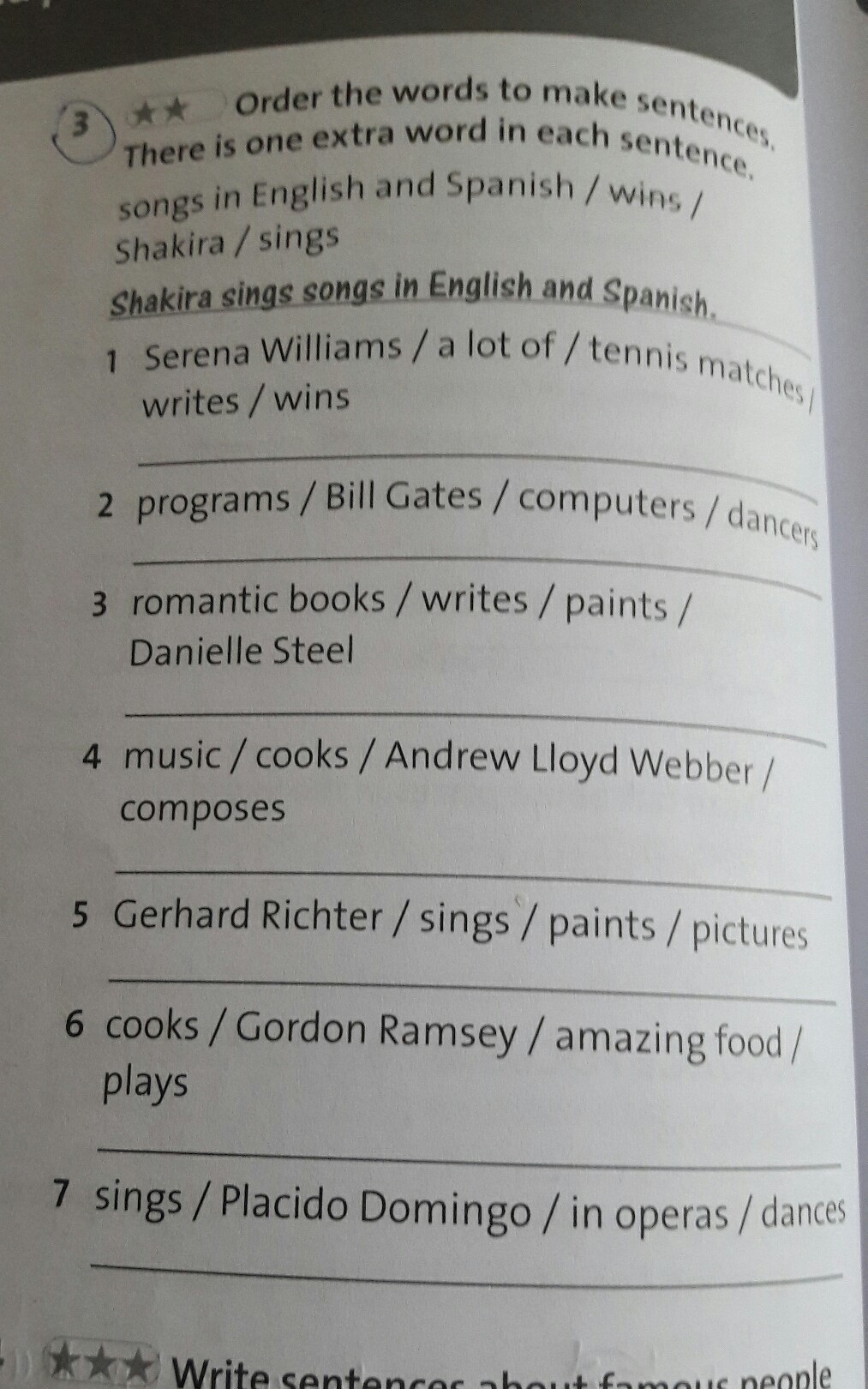 1. Serena Williams wins a lot of tennis matches (writes лишнее)
