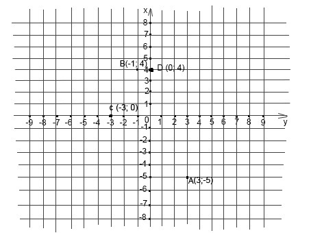 2. Отметить на координатной плоскости точки: А(3; -5); В(-1; 4); С(-3; 0); D(0; 4) Ответ:______________________________________.