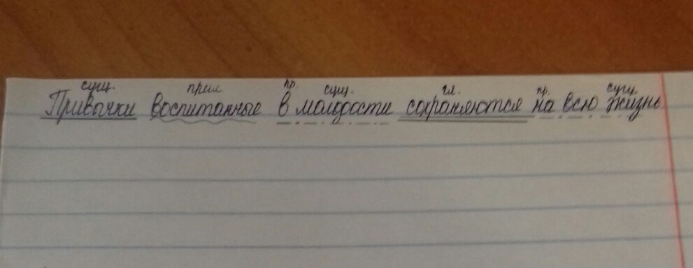 Привычки, воспитанные в молодости, сохраняются на всю жизнь. Повествовательное, невосклицательное, простое, полное, распространенное, осложнено причастным оборотом. Привычки - подлеж, сохраняются - сказуемое, на всю жизнь - обстоятельство, воспитанные в молодости - определение.